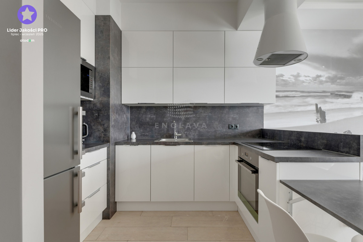 - Aneks kuchenny został funkcjonalnie zaprojektowany i wyposażony w sprzęt AGD: płytę indukcyjną, piekarnik, lodówkę, zmywarkę oraz mikrofalówkę,