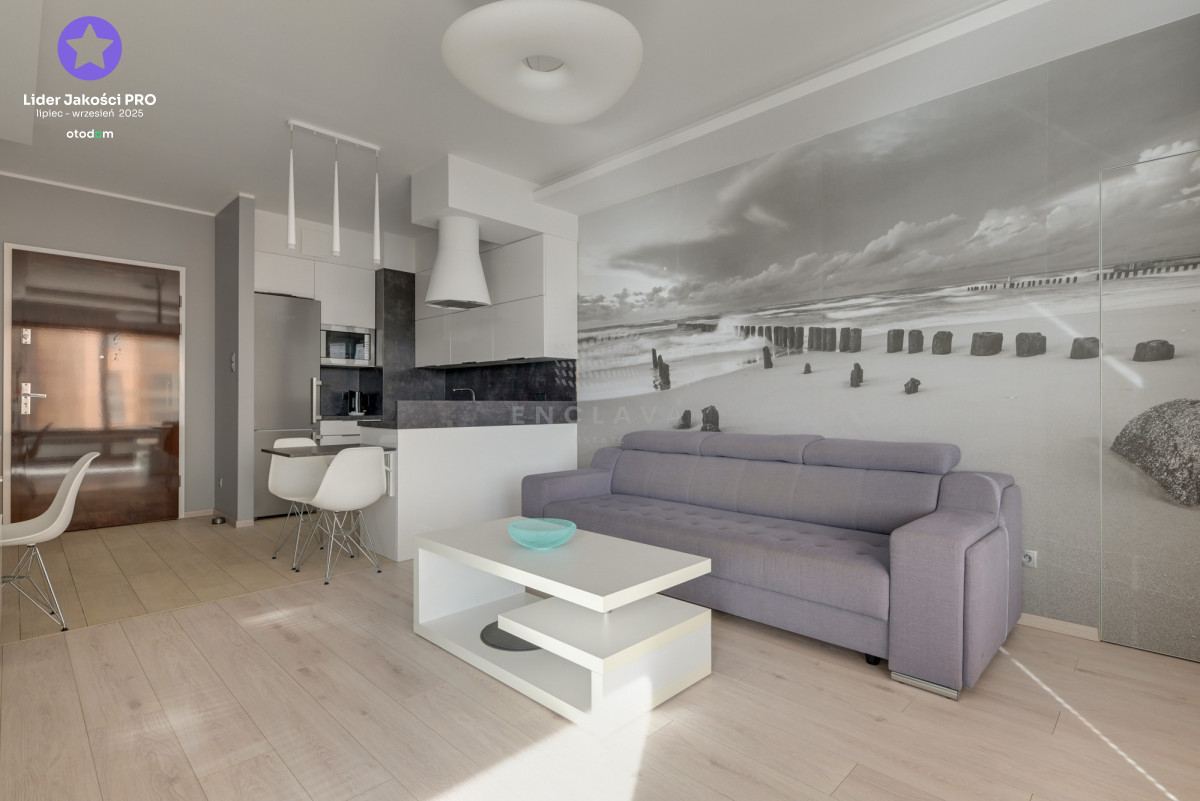 Mieszkanie położone jest w centrum Gdańsk, w inwestycji Brabank, w bezpośrednim sąsiedztwie rzeki Motława oraz Muzeum II Wojny Światowej. Lokalizacja zapewnia szybki dostęp do głównych atrakcji miasta, w tym Ulica Długa, Wyspa Spichrzów, Ulica Mariacka oraz nadbrzeża Motławy. W okolicy dostępna jest pełna infrastruktura handlowo-usługowa oraz dogodna komunikacja miejska.