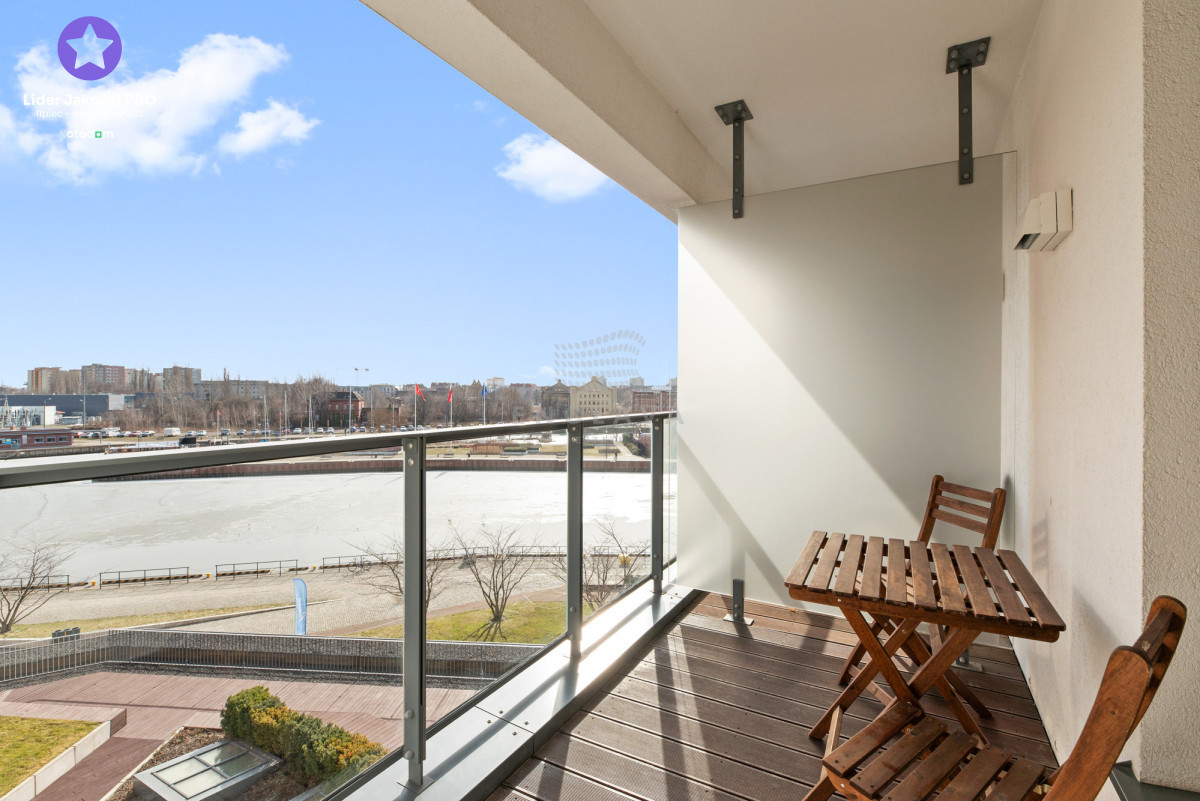 - Z części dziennej prowadzi wyjście na balkon z miejscem wypoczynkowym i bezpośrednim widokiem na Motławę oraz Wyspę Spichrzów,
