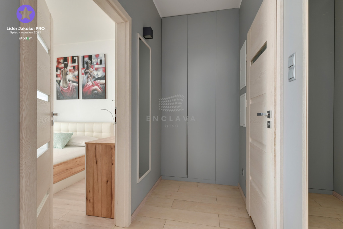 Lokal składa się z przestronnego salonu połączonego z aneksem kuchennym, sypialni, łazienki oraz korytarza z zabudową szaf.
