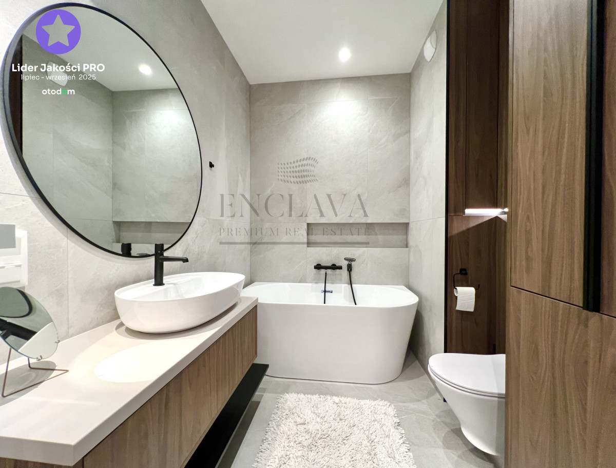 Lokal urządzony jest w wysokim standardzie, w jasnej i neutralnej kolorystyce. Całość jest bardzo dobrze doświetlona oraz w pełni wyposażona. W korytarzu oraz w jednej z sypialni znajdują się pojemne szafy zapewniające dużo miejsca do przechowywania.