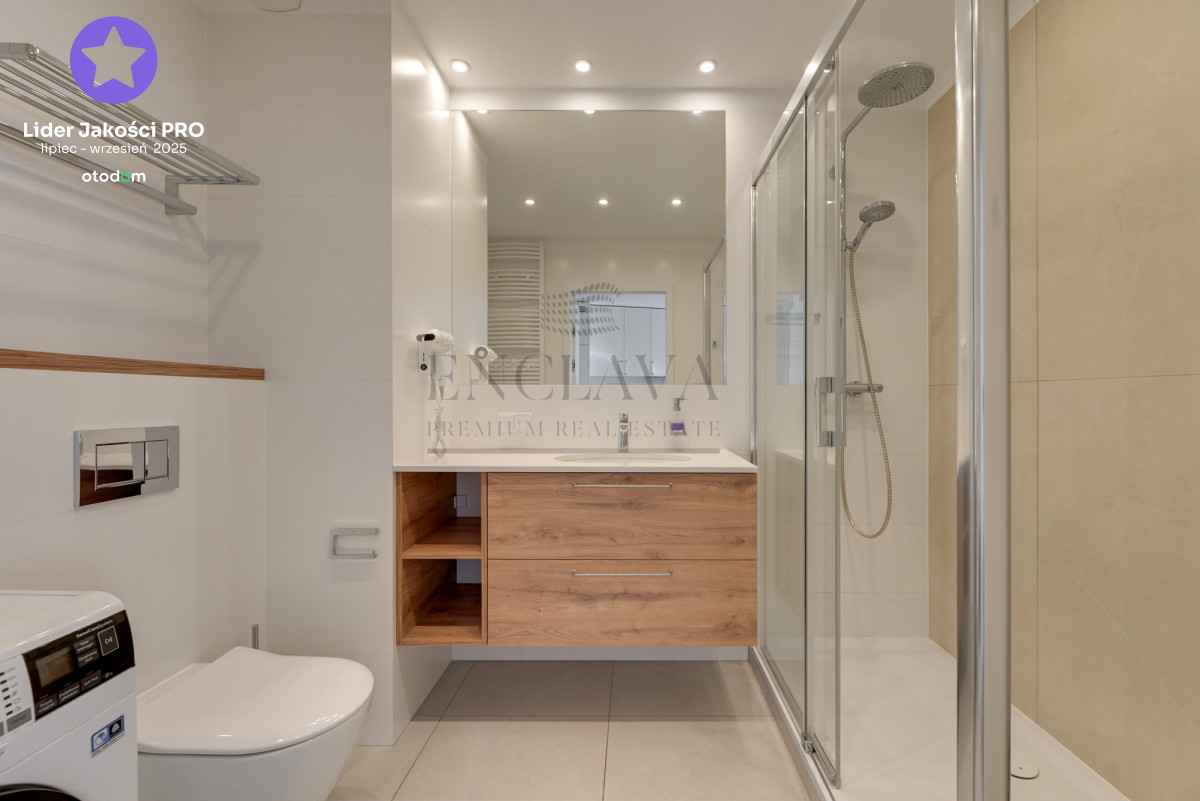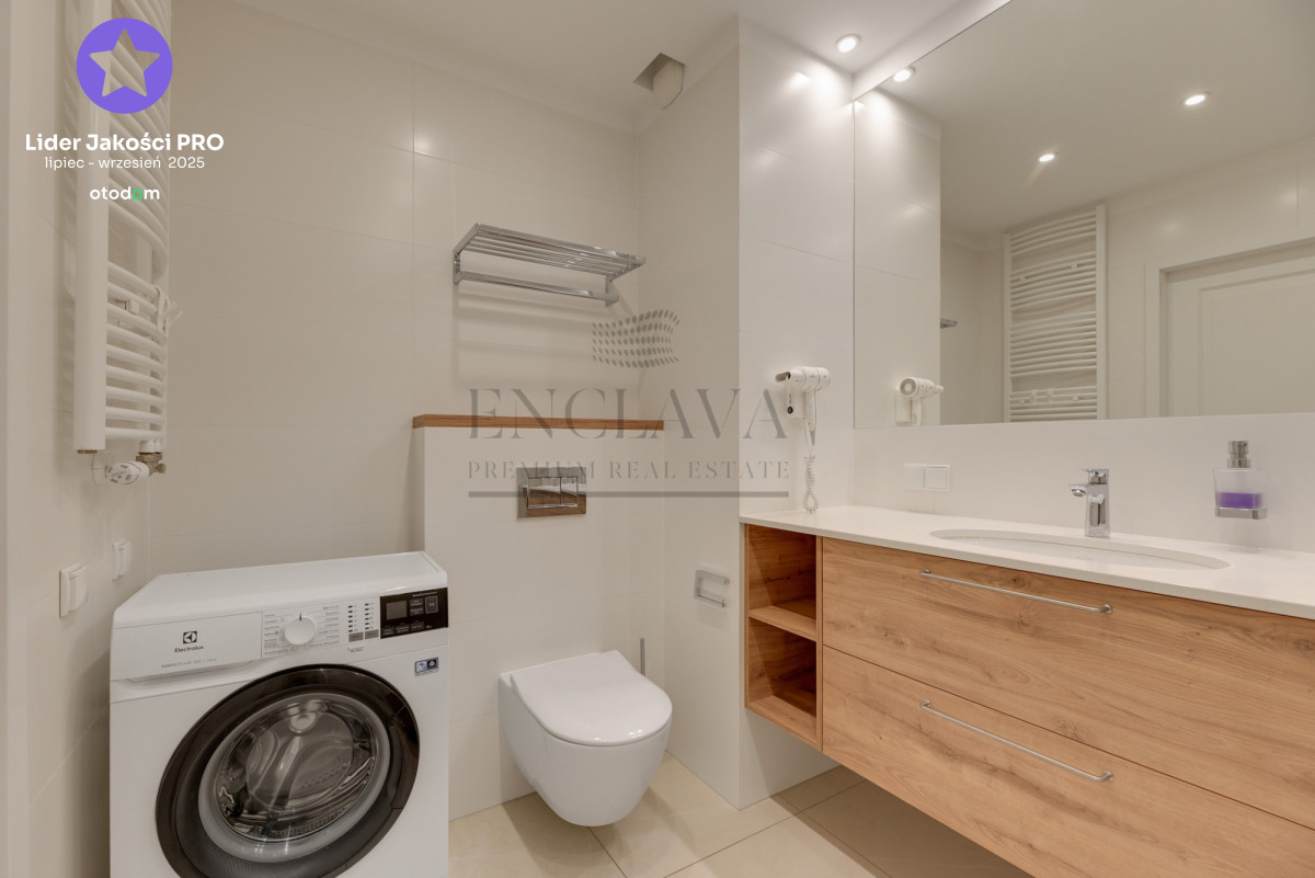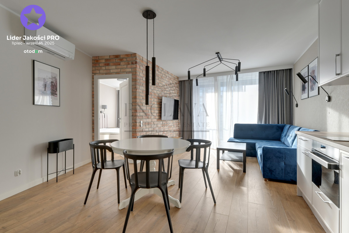 Apartament wykończony w wysokim standardzie, z dbałością o detale, wyposażony w klimatyzację i nowoczesne udogodnienia.
