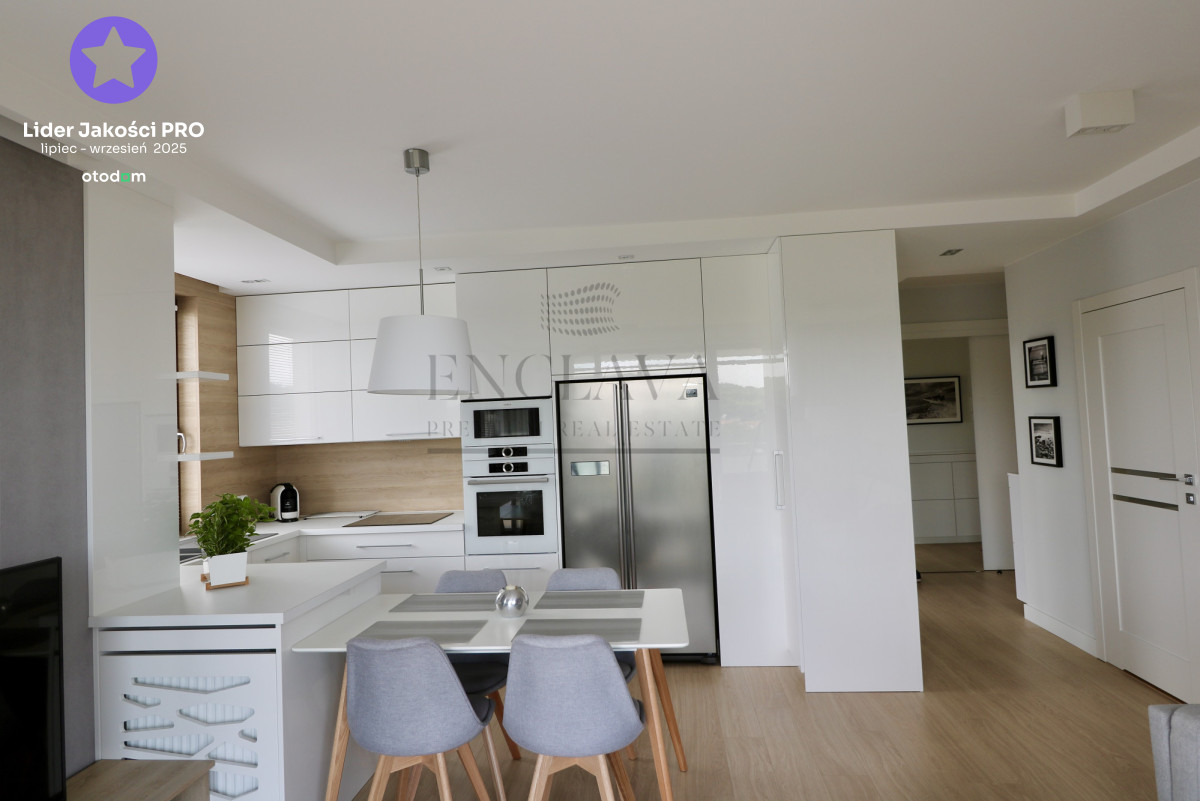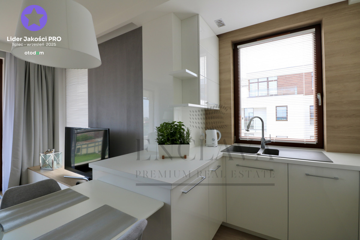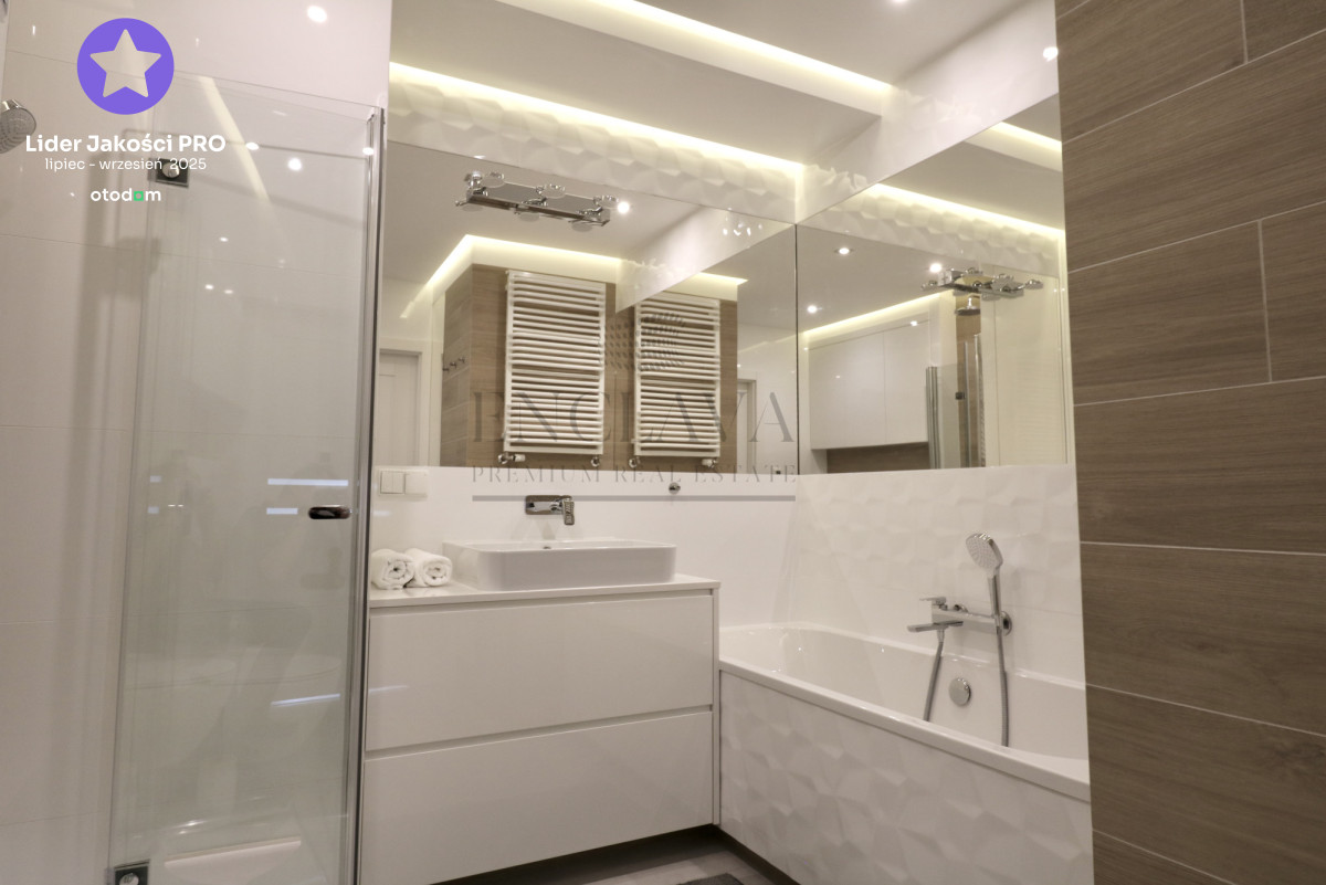 - Funkcjonalny układ: 2 pokoje, w pełni wyposażona kuchnia oraz łazienka z wanną i kabiną prysznicową.
